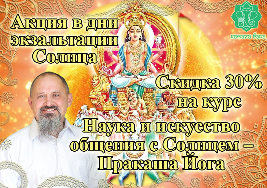 Скидка 30% на курс "Наука и искусство общения с Солнцем – Пракаша Йога" в записи для самостоятельного изучения в удобное время.