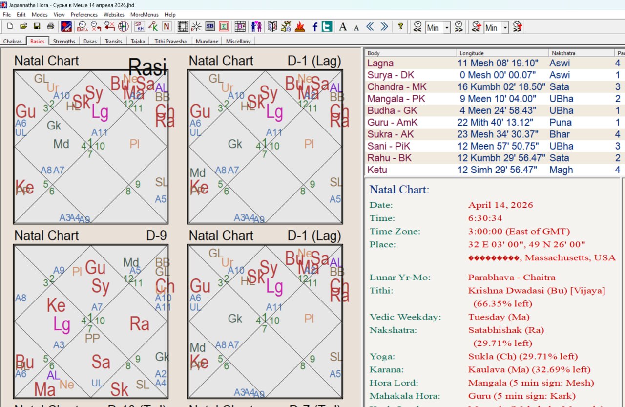 14 апреля Сурья входит в Меша Овен – в знак экзальтации, в Ашвини, накшатру Кету.
