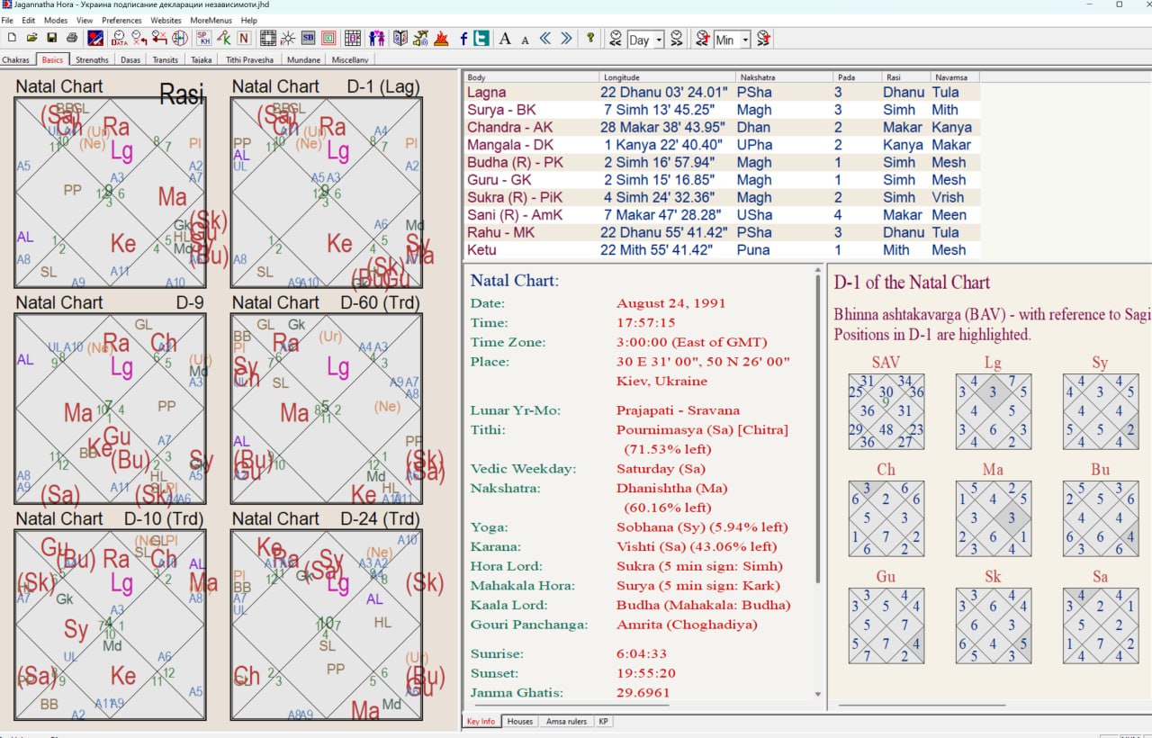 В карте Украины Сурья находится в 9 доме – доме дхармы, морального закона, философии, высшего смысла. Более того, он стоит в своём собственном знаке Льва, что внешне создаёт образ сильного, независимого и благородного лидера.