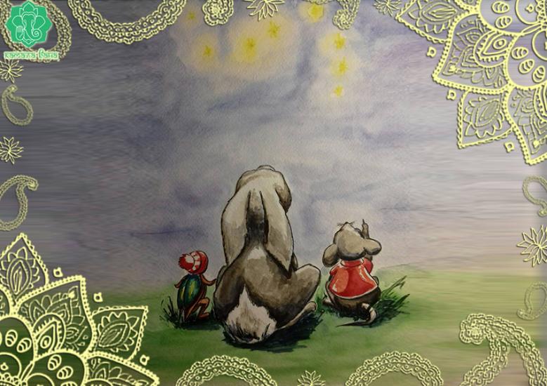 – А я никогда не смотрю на небо, – печально произнес Зайка. – Ведь я всё время в бегах и слежу за следами и тропами и мне некогда глядеть вверх, иначе меня поймают охотники или дикие звери.