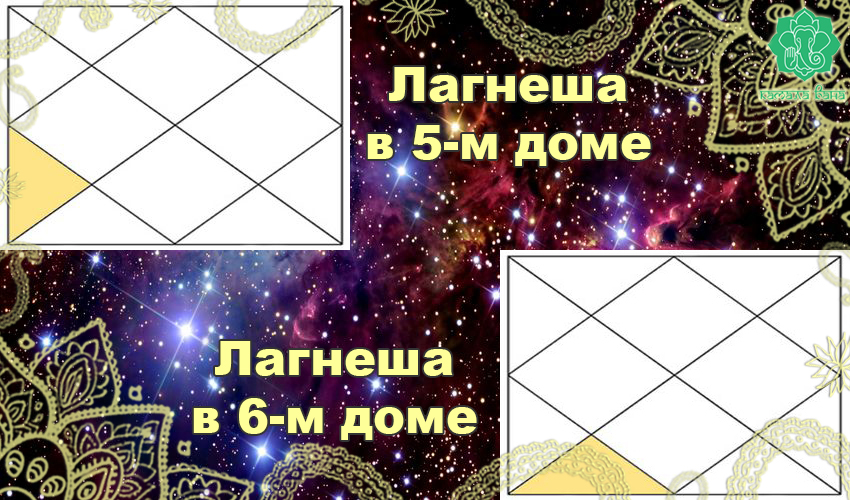 Поскольку 5-й дом – трикона, то естественно Лагнеша в этом доме улучшает свою природу и соответственно процветает Лагна. Исключением является восходящий знак Телец. Его хозяин Венера попадает в 5-м доме в знак Дева, который является для неё местом падения. В таком положении очень важно наличие нейтрализаций.