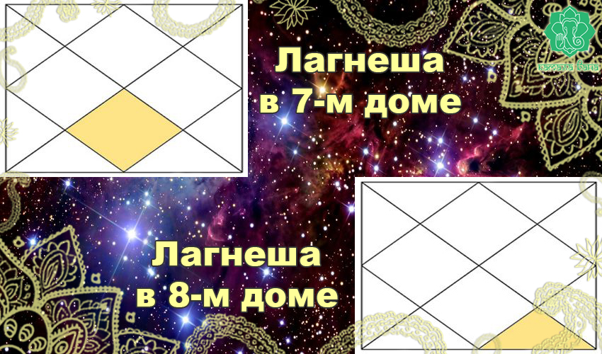 Нехорошо для дел 7-го дома и самого человека, если Лагнеша попадает в положение падения в 7-м доме; у человека в этой ситуации есть сильная привязанность к делам 7-го дома, он не столько любит партнера, сколько боится остаться один, но большое значение имеет наличие нейтрализации и природа планет, влияющих на 7-й дом.