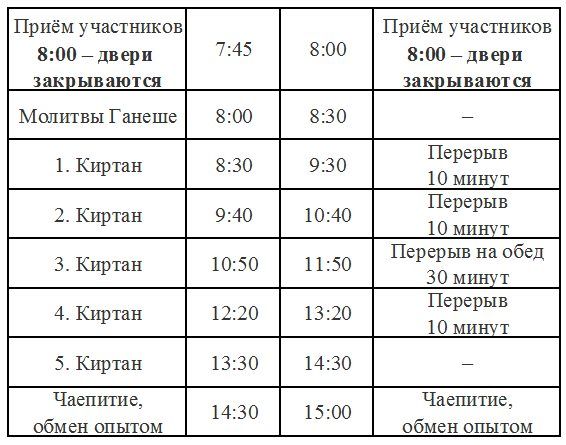 • 5 часов Киртана – совместное пение мантры Ганеше «Ом Гам Ганапатайе Намаха».