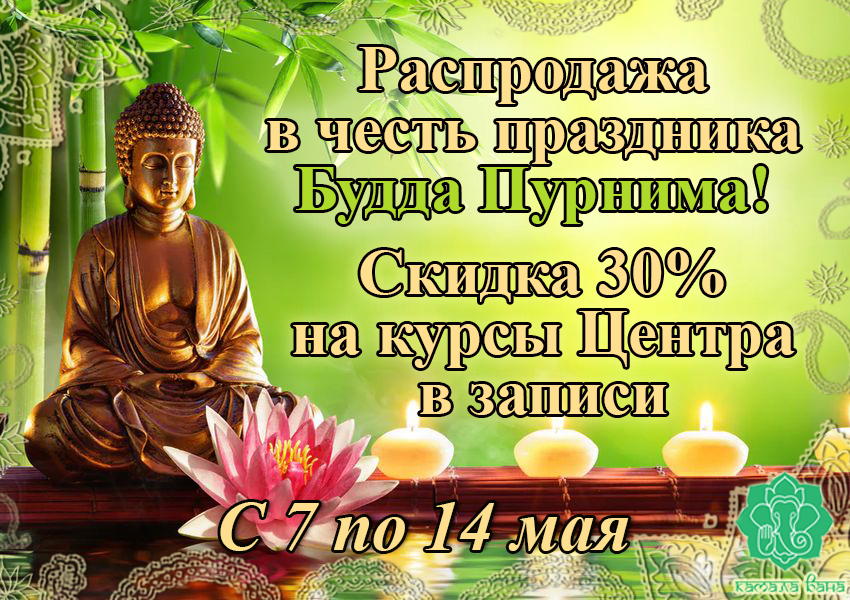 Центр «Камала Вана Джйотиш Махариши» проводит акцию-распродажу в честь праздника Будда Пурнима. Скидка 30% на обучающие курсы Центра в записи для самостоятельного изучения в удобное время.