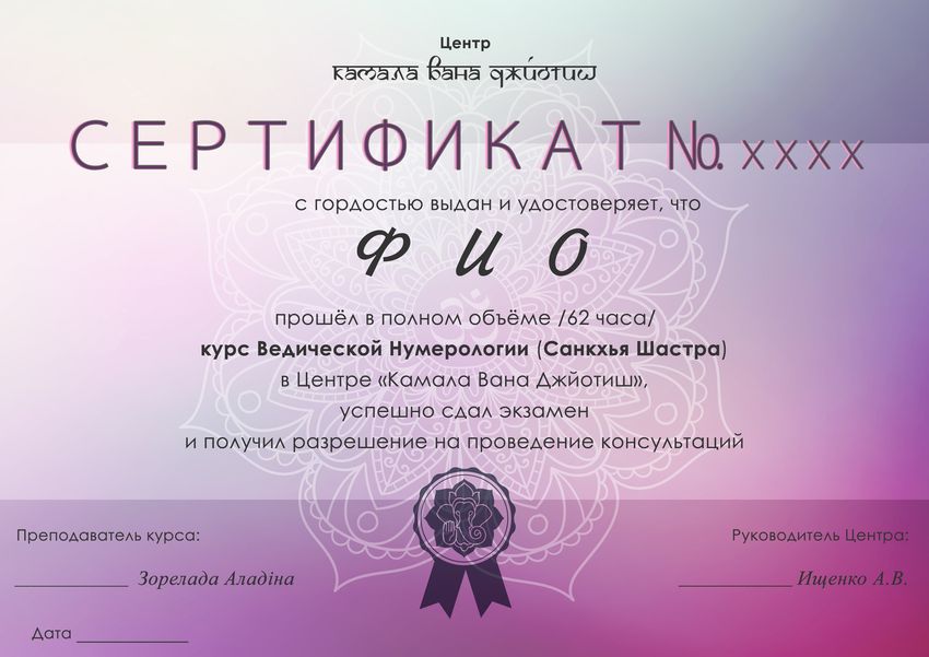 Кто хочет такой вот сертификат и собственный авторский стиль консультирования по Ведической Нумерологии, хочет глубже понять себя и окружающих - милости прошу!