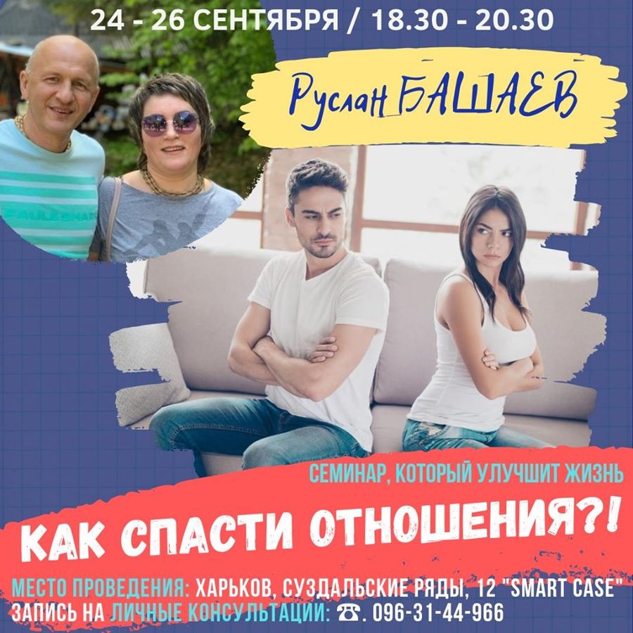 24 – 26 сентября в Харькове состоится следующий семинар Руслана Башаева из цикла "Тайна сокровенных знаний о счастливой семейной жизни".