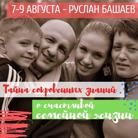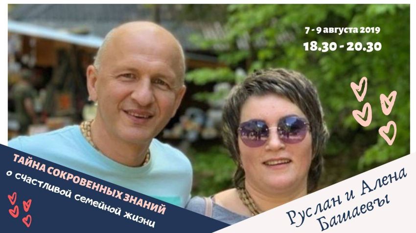 7 – 9 августа 2019 в Харькове состоится очередной семинар Руслана и Алёны Башаевых из цикла "ТАЙНА СОКРОВЕННЫХ ЗНАНИЙ О СЧАСТЛИВОЙ СЕМЕЙНОЙ ЖИЗНИ".