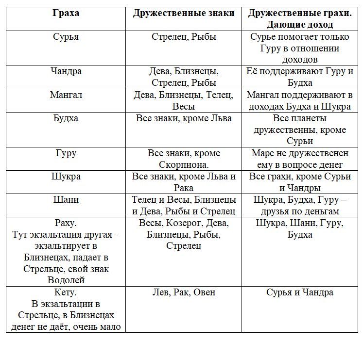 4. Граха в знаке друга – доход выше среднего.