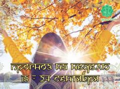 Прогноз на неделю 25 сентября – 1 октября. На этой неделе нас ждет Полнолуние и начало убывающего цикла Луны, во время которого хороши обучение, возврат к отложенным делам, пересмотр и реорганизация каких-либо вещей, очищение организма и пространства. Меркурий с 1 октября перейдет в знак Девы, место своей экзальтации. Это прекрасный период для образования, переговоров, коммерции, крупных покупок, а также детального подхода к вещам,...