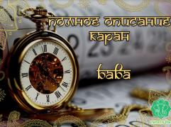 1. Бава Подвижная. Благоприятная. Основное значение – благое начало, очень хорошая способность начинать хорошие дела и доводить их до конца. Управитель Индра. Планета куратор – Сурья. Перевод – лев. Подходит для следующих дел. • Благоприятна для всех начинаний, • Долгосрочные проекты, • Оздоровление, в особенности оздоровление для женщин, • Вообще любые оздоравливающие практики, • Спорт, физические занятия, увеличение силы, использование силы...