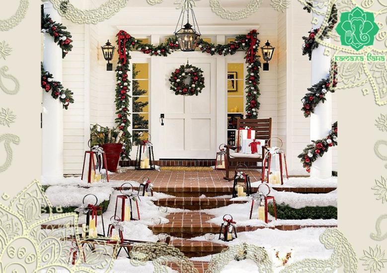В преддверии Нового года, уделите внимание украшению дверей, добавьте гирлянд к Северным и Восточным дверям, заснеженных цветов и лент на Юго-Востоке, шишек и еловых веток на Юг, Юго-Запад и Запад, колокольчики и мишуру на Северо-западе.