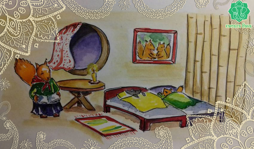 А на ночь Мышонок в гостях остался, так как домой слишком далеко было возвращаться на другой край леса. Бельчиха их в кроватки уложила, и окошко открыла, чтобы свежий вечерний воздух заходил и убаюкивал зверят. А сама свечку из воска пчелиного на столик поставила и села рядышком на ночь сказки рассказывать. В комнатке пахло воском и цветочной пыльцой. Из окошка доносилось стрекотанье сверчков и кваканье лягушек. Прохладный шаловливый ветерок то и дело врывался в окошко и колыхал пламя свечи.