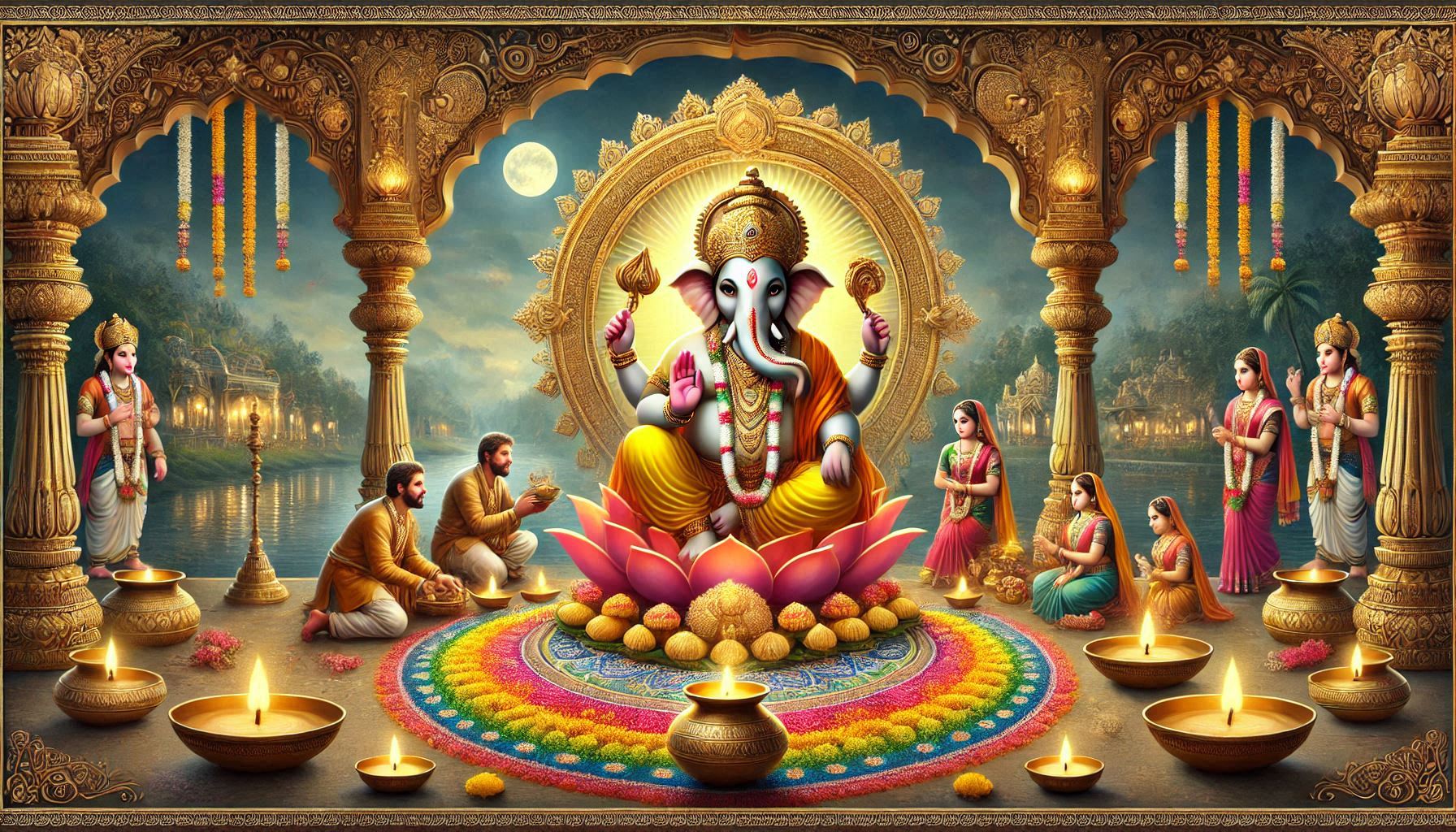• Украшают изображение или мурти Ганеши, совершают арти.