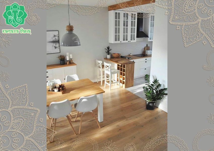 Восточный сектор очень приятен для кухни, тут допустима и вода, и огонь, его можно в меру загрузить, но и оставить лёгкость и свободу, допустим даже небольшой камин.
