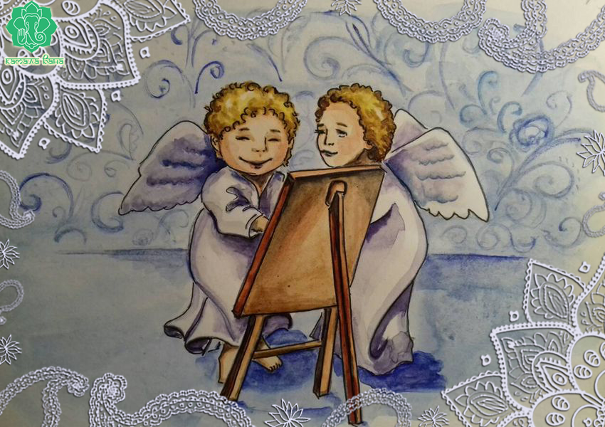 Тут малыши учились рисовать акварельными красками. Всё утро они возились, пробуя разные цвета и кисточки всех форм и видов. Везде стояли мольберты, и лежала бумага разных размеров, с всевозможными рисунками и узорами. Работы малышей были довольно занятными. Ангелы-учителя так увлеклись рассматриванием получившихся картин, что не заметили, как их ученики тем временем утащили коробки с красками и тихонько вылетели в открытое большое окно.