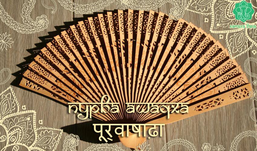 Человек, чьё рождение произошло в накшатре Пурва Ашадха, постоянно пьёт воду; он сладострастный, одарён остроумием (умён в разговоре), у него хороший характер и много богатства.