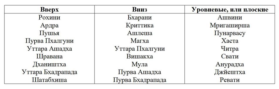 Накшатры уровневые, или плоские, или увиливающие в сторону