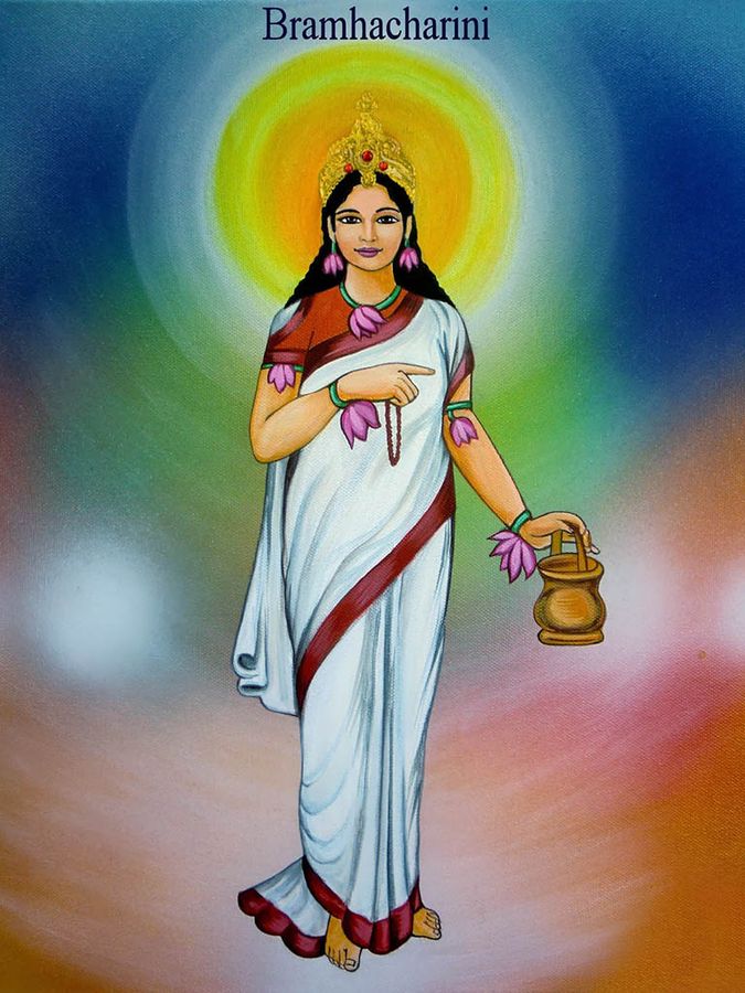 Второй день посвящен Брахмачарини («Ведущая к Брахману», «Совершающая аскезу»). Богиня изображается с чётками и сосудом с водой в руках. Начало духовного пути может быть наполнено препятствиями и обстоятельствами, мешающими духовному росту, а также тенденциями застревания в трясине материального мира. Брахмачарини помогает преодолеть эти препятствия. Её почитание даёт человеку силы на выполнение аскезы, отречения, устраняет страсти, даёт праведное поведение и самообладание. Сознание движется вверх к свадхистхана-чакре.