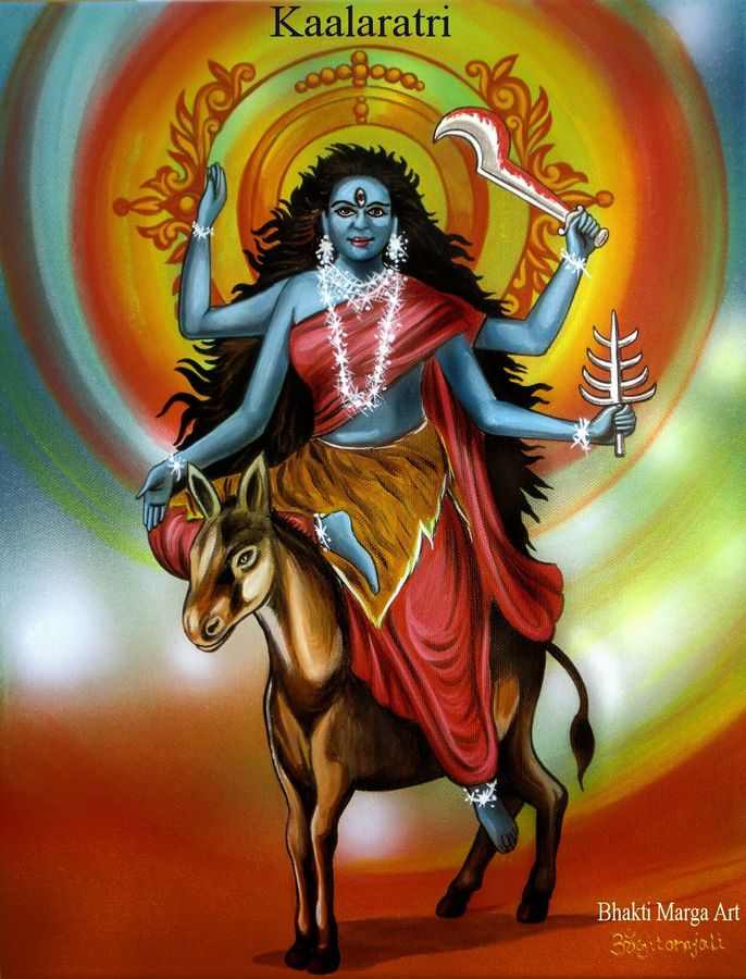 Каларатри («Ночь смерти», «Ночь Кали») – седьмая форма Дурги. Это чернокожая богиня с густыми волосами. У Каларатри три глаза; её животное - осёл. В руках она обычно держит факел и топор. Другое её имя – Шубханкари («Приносящая хорошее»), и преданным не надо бояться её.