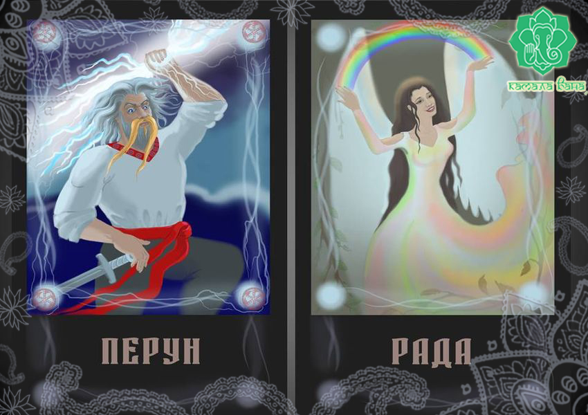 На фото: образы Перуна и Рады из МАК-колоды #Боги_и_Предки