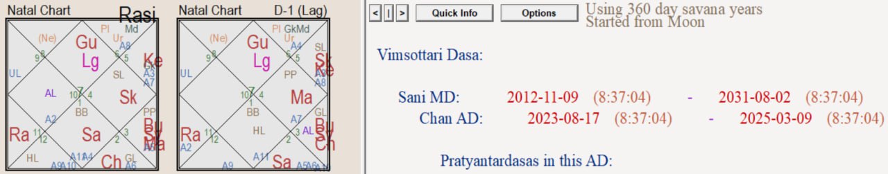 Маха даша Шани идёт, 5-й дом включён. Карака 5-го дома основная Гуру. Гуру в Читре, Читра Юг. Совершайте поездки на юг от того места, где вы сейчас проживаете постоянно или временно с образовательными целями или с детьми, или для инвестиций и так далее – то есть путешествие должно быть связано с караками 5-го дома. Паломнические поездки очень хороши в этом направлении. Такие поездки принесут максимум улучшения кармы, увеличения благочестия и т.д.