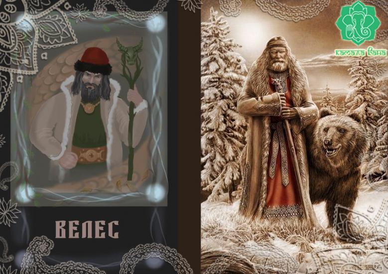 Велес – строгий и щедрый Морозко из народных сказок, одаряющий трудолюбивых и великодушных. Настенька, попав в царство к Морозке, с усердием и преданностью послужила ему, убрала в доме, испекла пироги – и за доброту её одарил Дед Мороз богатством неслыханным.