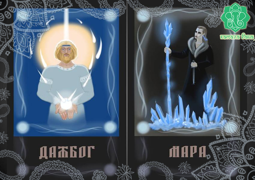 Для Дажбога Мара – загадка и тайна, ему не хватает в ней мягкости и податливости, она может манить и завлекать его своим строгим обаянием, но не даёт ему развернуться во всю мощь его натуры. Мара склонна откладывать, выжидать, экономить, сужать и приостанавливать, а на мужчину-Дажбога это действует угнетающе, он словно лишается поля деятельности и самого главного в его жизни дела – светить другим.